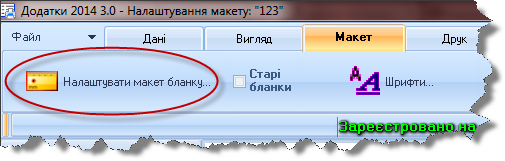 Щоб відкрити вікно налаштувань макету, натисніть кнопку "Налаштувати макет бланку..." на вкладці "Макет".