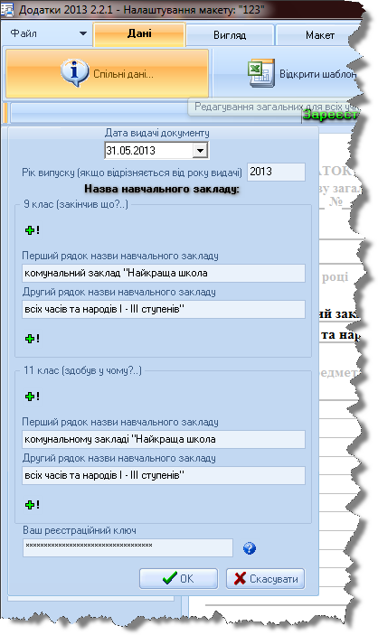 Після завершення реєстрації та отримання ліцензійного ключа його слід увести під час заповнення спільних даних до відповідного поля вікна "Спільні дані" та натиснути кнопку "ОК".